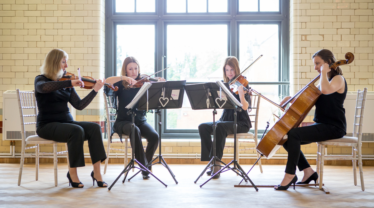 The ‘Highly Strung String Quartet’ was formed in the Midlands in 1997 and the players have all studied at the top music conservatoires in England; the Royal Northern College of Music, the Royal College of Music and the Royal Birmingham Conservatoire of Music. The string quartet has a huge profile in Nottinghamshire and the Midlands. The string quartet has played at weddings and corporate functions in some of the country’s finest venues including Belvoir Castle, Chatsworth House, Burghley House and Wroxhall Abbey. They have played for weddings on Guernsey and in France, for a corporate event in Brussels and performed concerts in the Caribbean including one on the exclusive island of Mustique.
